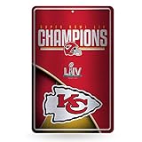 Rico Industries NFL Kansas City Chiefs – Super Bowl LIV Champions Large Embossed Metal Sign, 11 x 17-inches