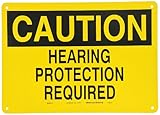 Brady 40972 10″ Height, 14″ Width, B-555 Aluminum, Black On Yellow Color Confined Space Sign, Legend “Caution, Hearing Protection Required”