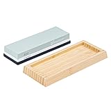 Restaurantware Sensei 8.3 x 3.5 x 2.2 Inch Kitchen Knife Whetstone 1 Sturdy Knife Sharpening Base – 400/1000 Grit No-Slip Base Corundum Sharpening Stone For Kitchen Knives Angle Guide