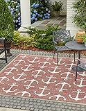Unique Loom Outdoor Coastal Collection Area Rug – Ahoy (13′ Square, Rust Red/ Ivory)