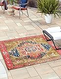 Unique Loom Outdoor Traditional Collection Area Rug – Limon (7′ 10″ Square Multi/Red)