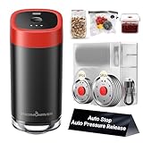 ThermoMaven Patented Mason Jar Vacuum Sealer Kit, 4-in-1 Automatic Vacuum Sealer for Jar, Vacuum Bag, Container, Wine Stopper, Jar Sealer with 10 Auto Pressure Release & Reusable Lids, Black & Red