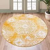 Unique Loom Sofia Collection Area Rug – Grand (7′ 1″ Round, Yellow/ Ivory)