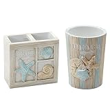 Zenna Home Toothbrush Holder Seaside Serenity Bath Accessories (1 Count) and Zenna Home Seaside Serenity Tumbler (1 Count)