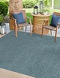 Unique Loom Collection Casual Transitional Solid Heathered Indoor/Outdoor Flatweave Area Rug (13′ Square, Teal/Navy Blue)