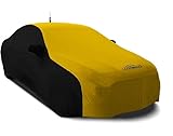 Coverking Custom Fit Exterior Car Cover Designed for Select Ford Mustang Model Vehicles: Satin Stretch Fabric, Black Sides with Yellow Center