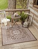 Unique Loom Outdoor Aztec Collection Area Rug – Chalca (13′ Square, Brown/ Ivory)