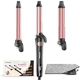 Rotating Curling Iron – 3 in1 Automatic Curling Iron with Interchangeable CurlingWand, 3/4, 1 1/4, 1 Inch CurlingIron for Lasting Beach Waves, Adjustable Temp, Instant Heat, Dual Voltage (Rose Gold)