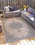 Unique Loom Outdoor Traditional Collection Area Rug – Antique (10′ x 13′ 1″ Rectangle Beige/Black)