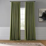 HPD Half Price Drapes – Faux Linen Curtains for Living Room (1 Panel) – 50W X 84L – Textured Room Darkening Curtains for Bedroom 84 Inches Long – Drapes for Home Decor, Tuscany Green