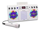 Starion KS303W-B Portable Bluetooth/CD+G Karaoke Machine – White l Built-in Stereo Speakers l Detachable Tablet Holder l Multi-Color Light Effects l Built-in Bluetooth Receiver l Microphone Included