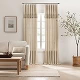 Mercantile Lucinda Light Filtering Window Curtain with Attached Knotted Fringe Valance (1 Panel), 50 in x 95 in, Linen