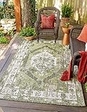 Unique Loom Outdoor Traditional Collection Area Rug – Valeria (7′ 10″ x 11′ Rectangle, Green/ Light Green)