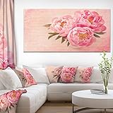 Designart Peony Flowers Against Scribbled Back Canvas Artwork Print, 28” x 60” x 2”, Pink