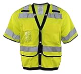 Ironwear 1280-LS-RD-CID-6-3XL ANSI Class 3 Polyester SAFETY Vest with Snaps, Clear ID Holder, & 2″ Silver Reflective Tape, Orange, 3X-Large