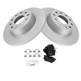TRQ Rear Brake Pad & Rotor Kit Ceramic Premium G-Coated Compatible with 2010-2013 Audi A3 2009-2010 A3 Quattro 2012-2014 Volkswagen Beetle 2011-2015 Golf 2015 Golf SportWagen 2012-2018 Jetta