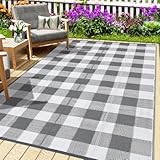 GarveeHome Outdoor Rug 5×8 Plastic Straw Rug Waterproof Patio Rug Black and White Outdoor Rug Rv Camping Rug Checkered Outdoor Rug Geometric Carpet for Deck Balcony Picnic Beach,Gray/White