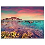 Designart PT9091 20 12 Giallonardo Beach Colorful Sunset Seashore Photo Canvas Print, 20″ x 12″, Red