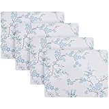 Laura Ashley Cork Placemats 16 x 12-inch for Kitchen and Dining Tables, Heat Resistant, Durable, Easy Clean, Set of 4, Oriental Blossom