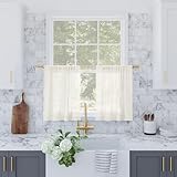 Archaeo Slub Textured Linen Blend Curtains, Cafe Curtain Pair, 56″ x 24, Ivory