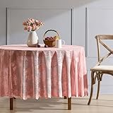 HLC.ME Butterfly Floral Lace Fabric Tablecloth, Lace Fabric Table Cloth for Round Tables, Wrinkle Resistant Tablecloth, Patterned Scalloped Tablecloth (70 Round, Blush Pink)