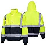 OMOTIYA HI VIS Safety Hoodie Jacket for Men, Class 3 Reflective Hoodie with Pockets