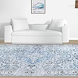 Superior Large Indoor Area Rug, Modern Floor Decor, Living/Dining Room, Kitchen, Office, Distressed Geometric, Floral Medallion, Cotton Backing, Elodie Collection, 5′ x 7′ 6″, Sapphire Blue