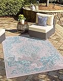 Unique Loom Jill Zarin Jill Zarin Outdoor Collection Area Rug – Dubai (5′ 3″ x 8′ Rectangle, Pink and Aqua/Light Blue)