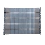 Creative Co-Op Plaid Cotton Blend Throw with Fringe, Blue