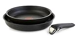 T-fal Ingenio Detachable Handle Cookware Set, Stackable Set. Induction Oven Broiler Safe 500F Cookware, Pots and Pans, Oven, Broil, Dishwasher Safe, 3 Piece set, Onyx Black