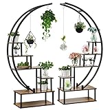 Elevens 2 Pcs 6 Tier Tall Metal Indoor Plant Stand Half-Moon-Shaped Plant Shelf Holder Multi-Purpose Plant Stands plants decor plant stands for home decoration (round-oak)