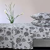 Tribeca Living Ultra-Soft Flannel Sheet Set, 170-GSM Cotton, Deep Pocket, Cozy Winter Bedding – Full, Floral Deep Grey