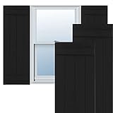 Ekena Millwork 21 1/2″W x 31″H True Fit PVC Four Board Joined Board-n-Batten Shutters, Black (Per Pair – Hardware Not Included)