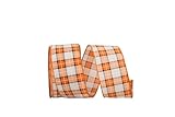 Reliant Ribbon Plaid Print Stitch Tones Wired Edge Ribbon, 2-1/2 Inch X 20 Yards, Orange/white