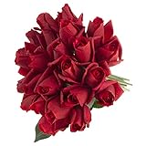 Pure Garden Rose Artificial Flowers – 24Pc Real Touch 11.5-Inch Fake Flower Set with Stems for Home Decor, Wedding, or Bridal/Baby Showers (Red)