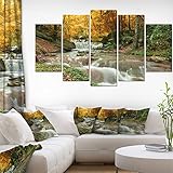 Designart Forest Waterfall with Yellow Trees Landscape Artwork Canvas Print, 60 x 32 in-5 Panels Diamond Shape