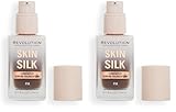 Revolution, Skin Silk Serum Foundation, Light to Medium Coverage, Lightweight & Radiant Finish, Contains Hyaluronic Acid, F18 Deep Skin Tones, 0.77 fl oz (Pack of 2)