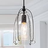 KSANA Modern Black Pendant Light, Farmhouse Pendant Lighting Fixture with Seeded Glass Shade for Kitchen Island, Dining Room, Living Room, Entryway, Stairway and Hallway