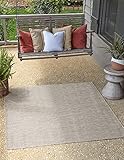 Unique Loom Collection Casual Transitional Solid Heathered Indoor/Outdoor Flatweave Area Rug (13′ Square, Light Gray/Ivory)