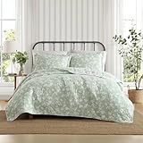 Laura Ashley – Quilt Set, Luxuriously Soft Bedding with Matching Shams, Floral Design, Elegant Home Essentials (Adorabelle Silhouette Green, Full/Queen)