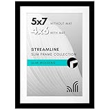 Americanflat 5×7 Picture Frame with Shatter-Resistant Glass – Use as 4×6 Frame with Mat or Display 5×7 Photo Without Mat – Streamline Collection – Picture Frames for Tabletop and Wall – Black