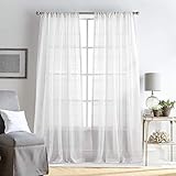 Martha Stewart Delicate Stripe Sheer Rod Pocket Window Curtain Panel Pair for Living Room, 84″, White