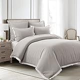 Lush Decor Rosalie Embellished Lace Comforter Set, 5 Piece Set, Full/Queen, Light Gray – Cottage Core Bedding – White Lace Trim – Farmhouse, Vintage, Minimalist & French Country Bedroom Decor