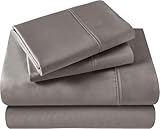 Superior Egyptian Cotton 400 Thread Count Bed Sheet Set, 1 Elastic Deep Pocket Fitted Sheet, 1 Flat Sheet, 2 Pillowcases, Soft Bedding, Luxury Sheets, Sateen Weave, Full Size, Grey