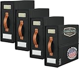 LOFT + IVY Sheet Organizers and Storage – Bed Sheet Holders Box for Linen Closet, Foldable Bedding Storage with Leather Handles, Label Slot, Closure – Black, 4-Pack