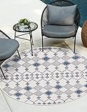 Unique Loom Outdoor Trellis Collection Area Rug – Traliccio (10′ Round, Ivory/ Navy Blue)
