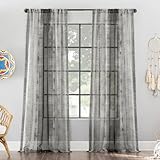 Archaeo Shibori Stripe Raw Texture Linen Blend Rod Pocket Curtain, 50″ x 84″, Gray