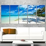 Designart Tropical Beach with Palm Shadows-Large Seashore Canvas Print-60×28 5 Piece-PT10382-401, 60 x 28 in-5 Equal Panels