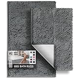 Hearth & Harbor Bathroom Rug Set, 2 Piece Chenille – Grey, Quick Dry, Non-Slip, Machine Washable – Bath Mat Size 17×24, 20×32 inches