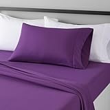 Amazon Basics 3 Piece Lightweight Super Soft Easy Care Microfiber Bed Sheet Set with 14″ Deep Pockets – Twin, Plum-4 Pack, White, Solid
